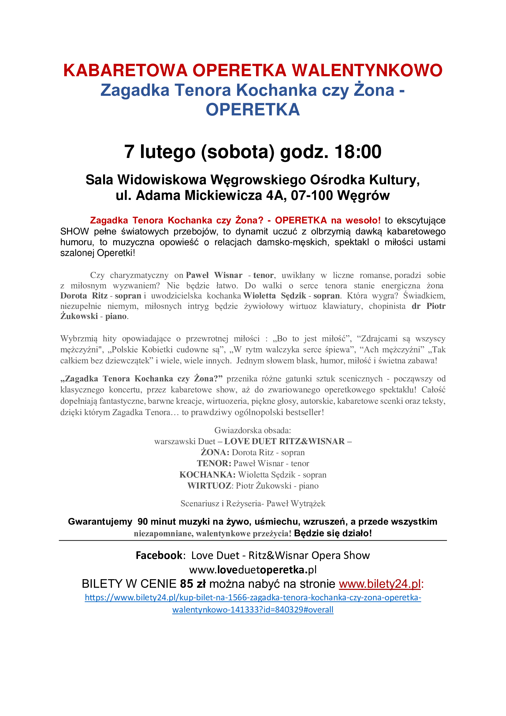 Kabaretowa Operetka Walentynkowa 15-12-2025Data publikacji, 15-12-2025, Milena SkorkaAutor, Milena Skorka, 77Ilość wyświetleń, 77